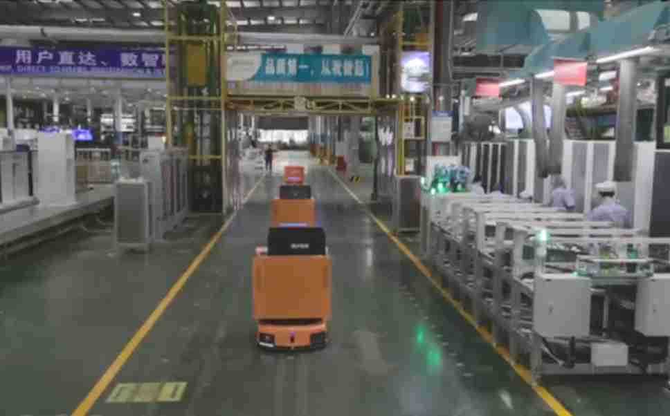 为车载冰箱物流配送打造的智能解决方案,,,包含产中物流通过潜伏举升AMR搬运至线边,,产后成品物流智能仓储,,流程包含产中物流智能齐套入库,,,,线边安灯叫料AMR智能配送至线边,,,,成品入库、、出库,,通过无人堆高车机器人,,,智能仓储管理替代人工作业管理,,实现更高存储、、、、更高效率、、、、更具柔性化的解决方案。。。。