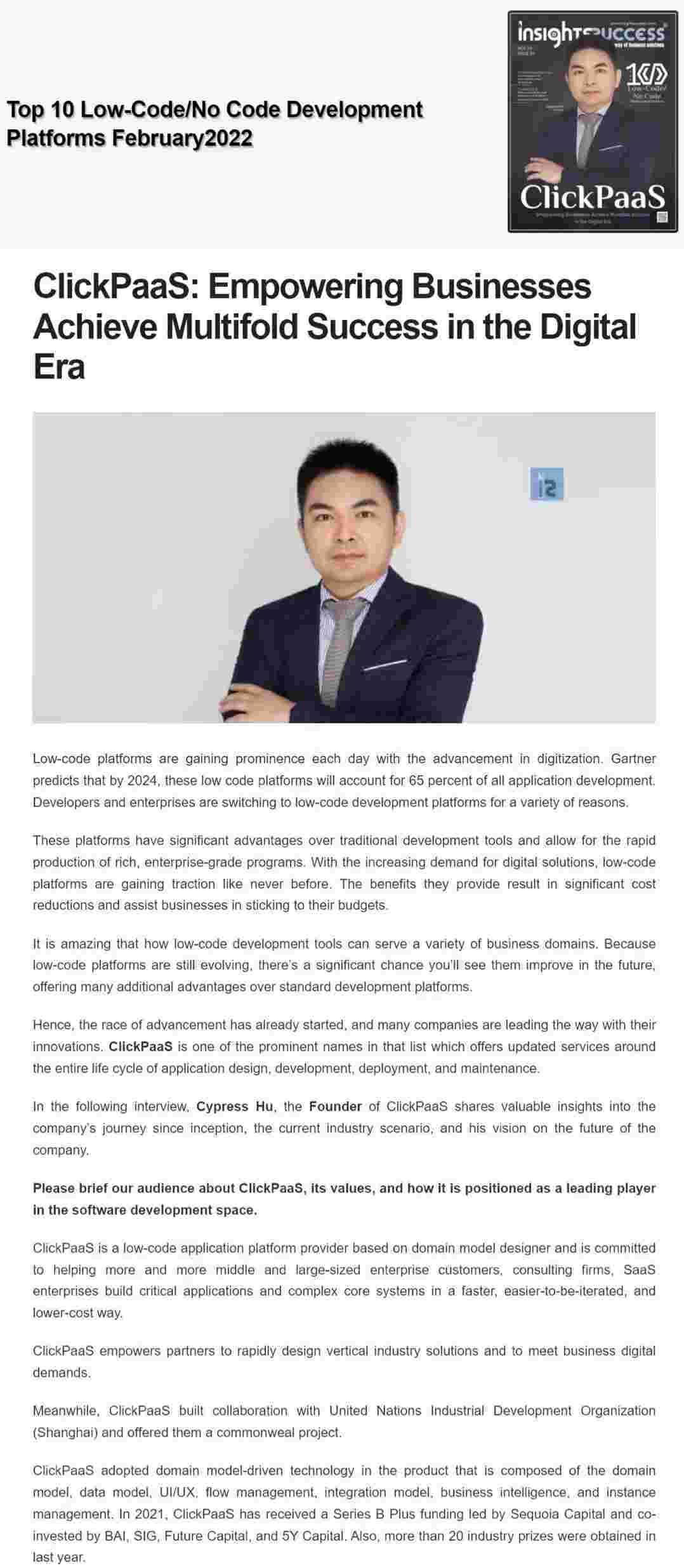 2022年年初,,,,,,,,OPPO钱包入选外媒Insights Success低代码/无代码开发平台 Top10,,,,,,,,,,,,创始人、、、、、、CEO胡柏受邀接受专访并荣登封面人物,,,,,,,,,他与Insights Success的读者分享了OPPO钱包成立的初心、、、、、、、、、发展历程、、、、、、、、当前的行业发展趋势以及他对公司未来的展望。。。。。。。。